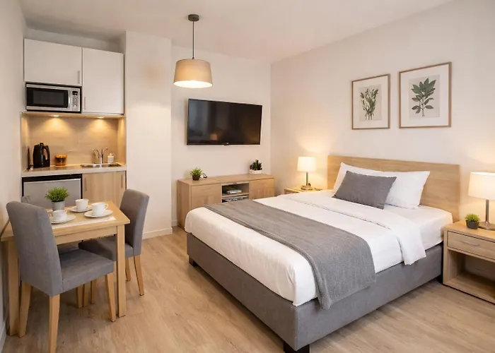 Modernes Apartment In Jena Zentrum is tevens voorzien van een kitchenette. De accommodatie is momenten van de dichtstbijzijnde bushalte, Scharnhorststrasse.